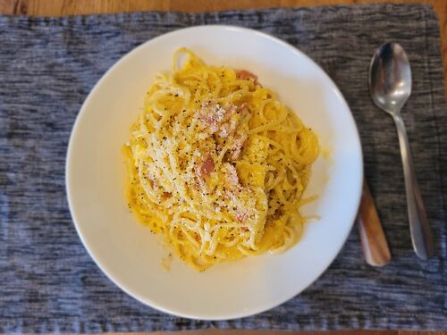 突然、料理ブログ? 子供もそれなりに大きくなり、時間も少し出来、子供が食べないが、私が食べたいカルボナーラを作ってみました。YouTube見ながら作りましたが、奥が深い。。。